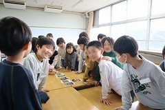 2組では、3班に分かれてキーワード(怖い、きらきらなど)を決め、そのキーワードに合うアートカードを選ぶ活動をしました。クイズ形式で他の班のキーワードを当てようと、真剣にアートカードを見比べていました。