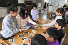 図工の学習で有名な作品がアートカードを使いました。アートカードには、日本や世界の有名な作品が載っているカードです。